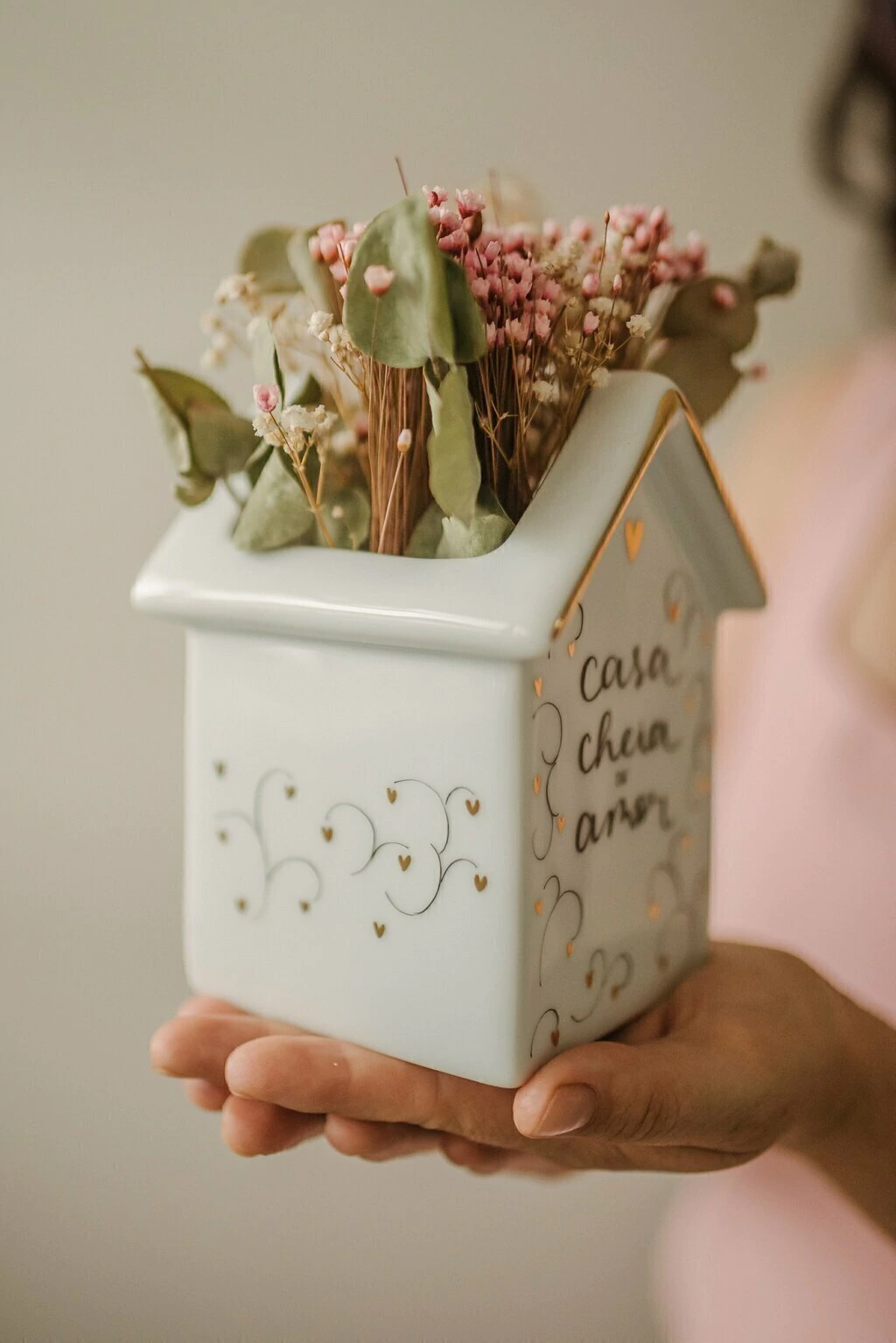 Casa cheia de amor. Essa peça é perfeita para adicionar um toque de charme e sofisticação a qualquer ambiente. Pode ser usada como vaso, porta utensílios, de várias formas.