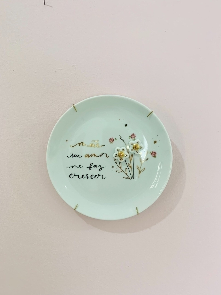 Está peça é a representação de amor e gratidão. Uma peça delicada e linda pintada a mão com ouro. As flores são em relevo ( porcelana) aplicadas no prato.